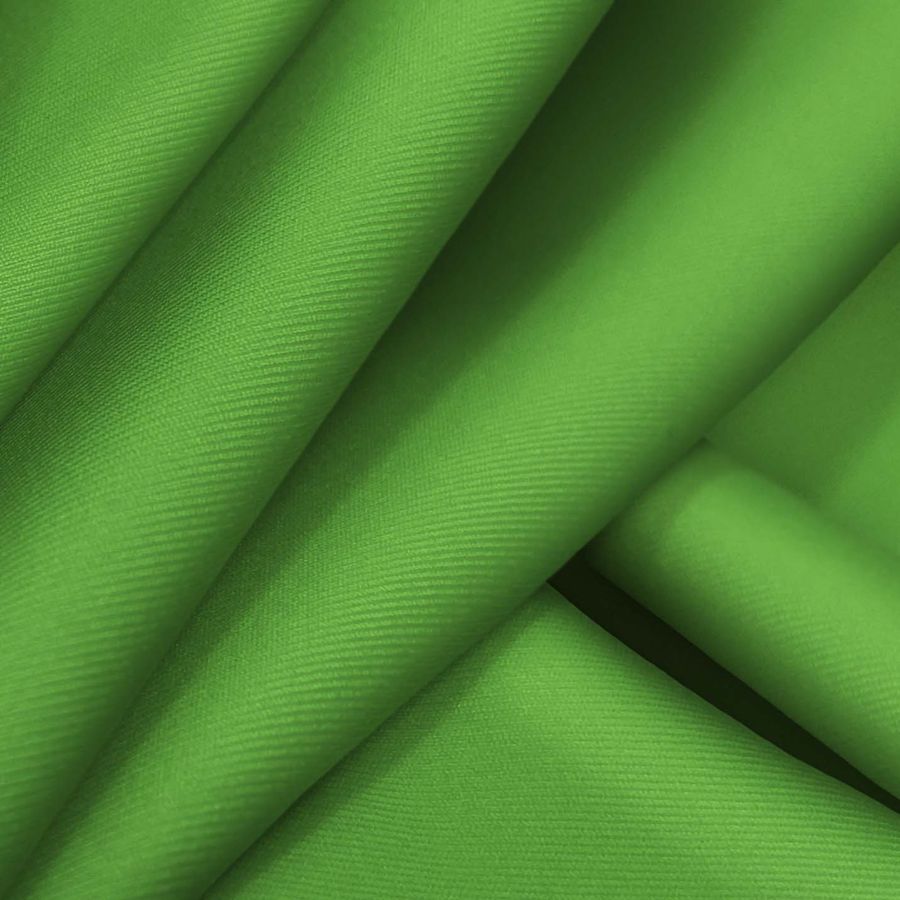 La tela base es la Lycra Reciclada - Recycled de 190 gr/m2, compuesta por un 85% de poliéster y un 15% de elastano, con una textura suave y elástica. El color liso impreso es un vibrante Verde Irlandés, con una combinación de tinta cian de 71, magenta de 18, amarillo de 98 y negro de 3 en CMYK. Este tono se acentúa principalmente con colores como el blanco, el negro y el amarillo. Es importante destacar que la tela está impresa con dicho color a una sola cara por impresión digital textil, lo que significa que el color solo está presente en una de las caras del tejido, no a través de todo el tejido tintado.