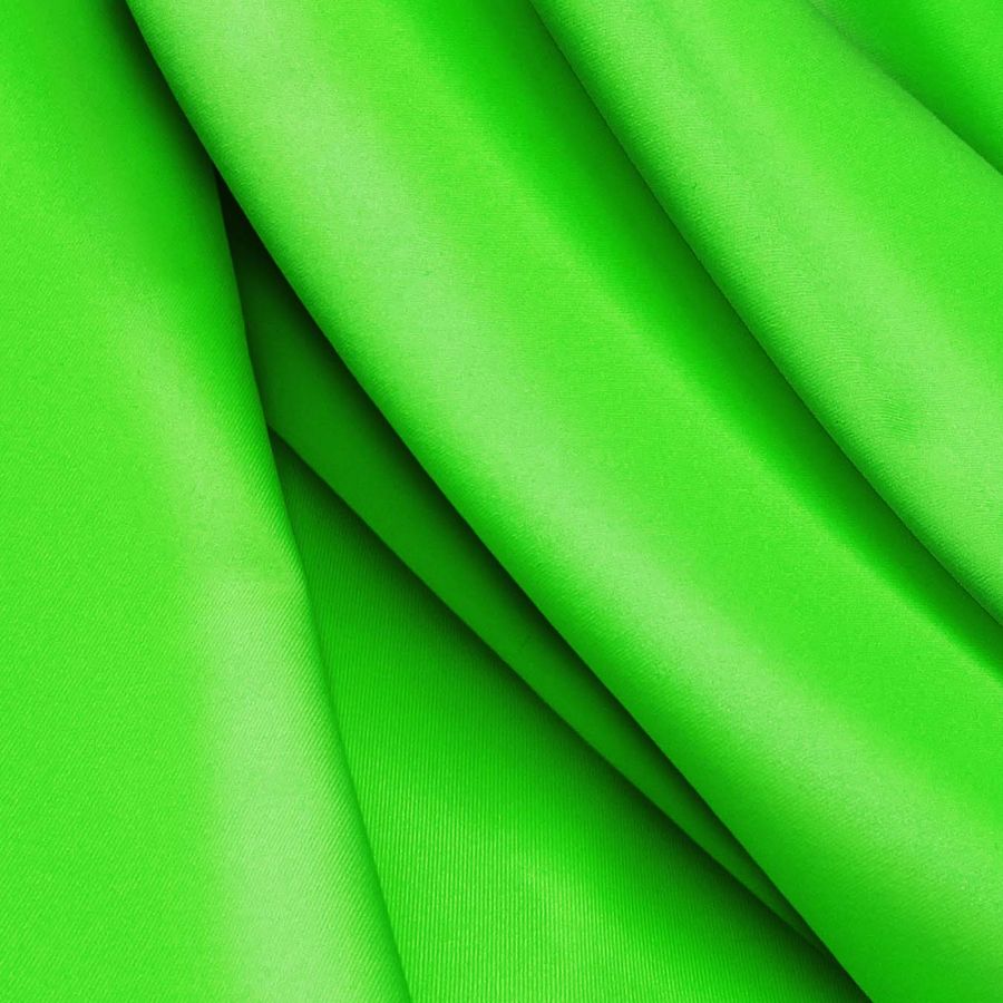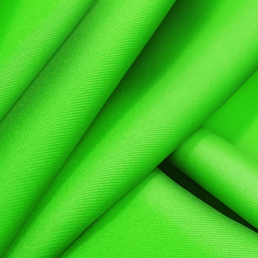 La tela base es la Lycra Reciclada - Recycled de 190 gr/m2, una tela elástica suave al tacto, compuesta por un 85% de poliéster y un 15% de elastano. El color liso impreso es el Veneno Verde, representado por un CMYK de 63 0 100 0. Este color es un verde intenso y vibrante, que combina perfectamente con tonos más claros como el blanco o el gris, y también con tonos oscuros como el negro o el marrón.