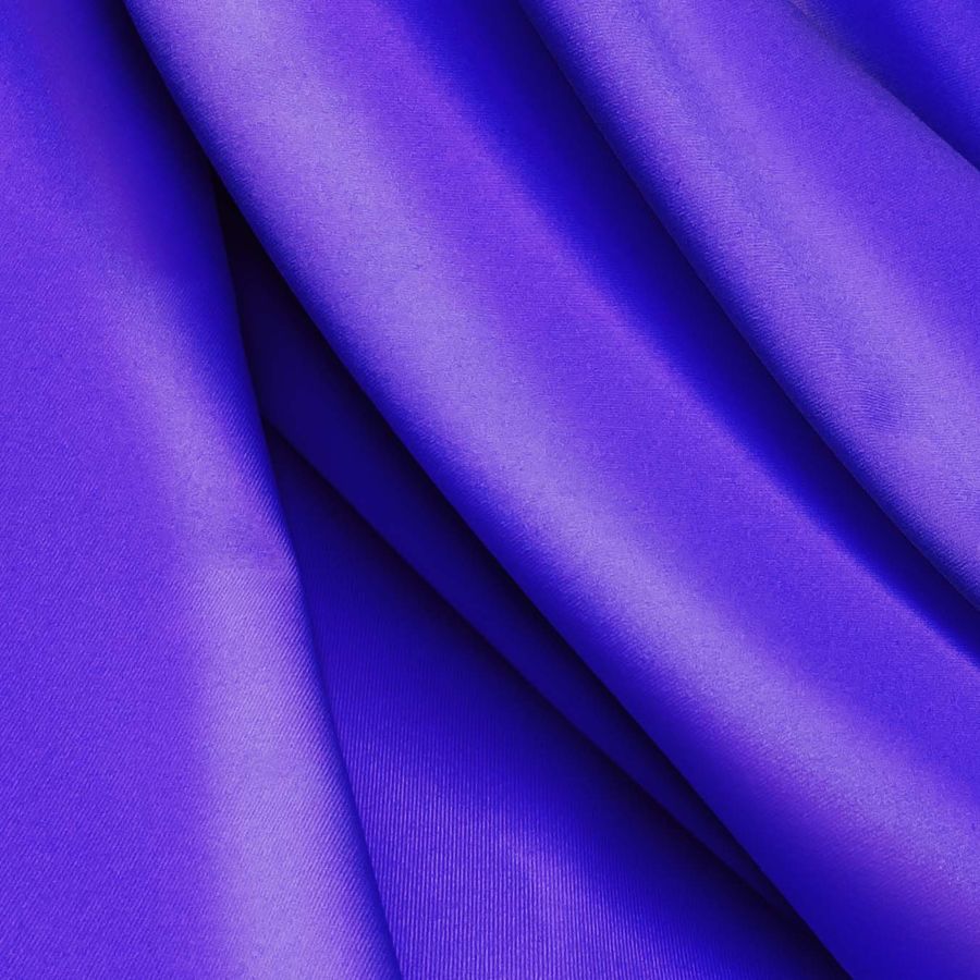 La tela base es Lycra Reciclada - Recycled de 190 gr/m2, compuesta de 85% poliéster y 15% elastano con acabado resistente al cloro y un factor de protección UV muy alto de 50+. El color liso impreso es azul chillón con un CMYK de 87 79 0 0, proporcionando un color saturado y vibrante. Este color se combina perfectamente con tonos neutros como el negro o el blanco, y también acompaña bien a otros colores vibrantes como el naranja o el rosa.