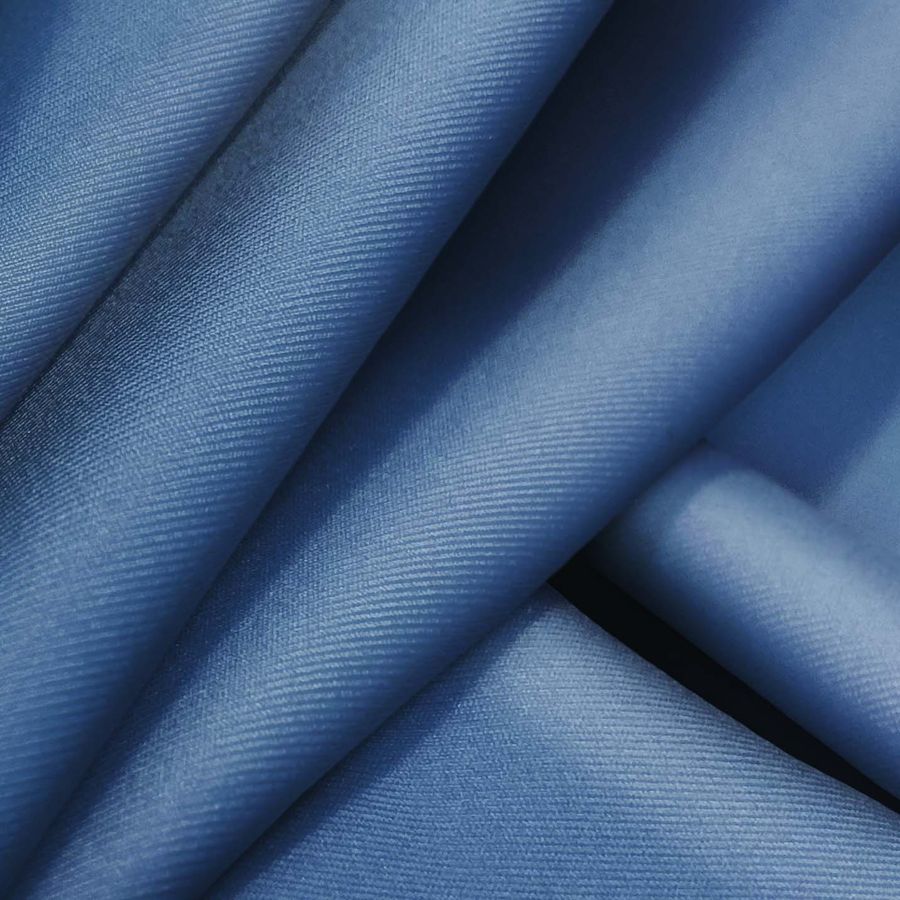 La tela base es la Lycra Reciclada - Recycled de 190 gr/m2, con composición 85% poliéster y 15% elastano. Tiene un gramaje de 190 gr/m2 y un ancho de 150 cm. El color liso impreso es Azul Clemátide, con valores de 82 en Cyan, 59 en Magenta, 24 en Yellow y 8 en Black, lo que resulta en un CMYK de 82 59 24 8. Este color presenta un tono azul cielo con un matiz violeta claro. Combina especialmente bien con tonos pastel y neutros como el gris y el beige.