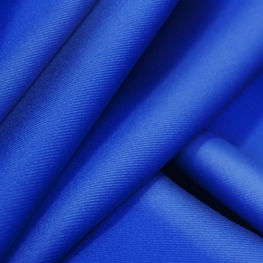La tela base es Lycra Reciclada - Recycled de 190 gr/m2, compuesta por 85% POLIÉSTER y 15% ELASTANO. Su color liso impreso es Azul Iris con un CMYK de 95 77 0 0. Este tono de Azul es profundo y vibrante, con un matiz púrpura que lo hace complejo y elegante. Combina armoniosamente con tonos neutros como gris y blanco, pero también con colores más atrevidos como el rosa y el verde.