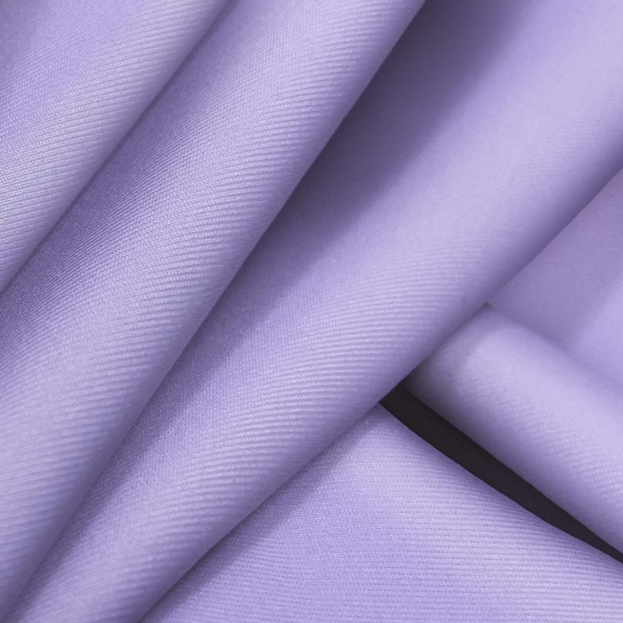 La tela base, Lycra Reciclada - Recycled de 190 gr/m2, está impresa en un color liso azul lavanda, cuyo CMYK es 35 37 0 0. Este tono tiene una connotación de tranquilidad y serenidad, y se combina bien con otros colores suaves como los tonos pastel y los neutros como el blanco y el gris. La tela está impresa a una sola cara por impresión digital textil, lo que garantiza una calidad de impresión nítida y duradera.