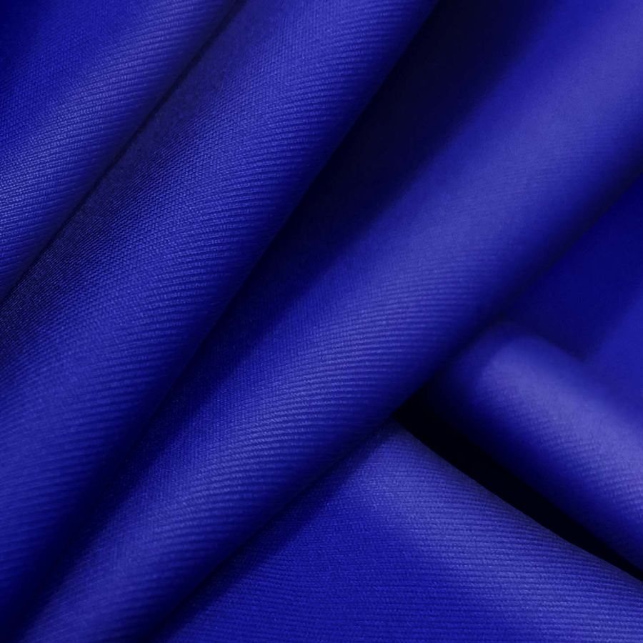 La tela base, Lycra Reciclada - Recycled de 190 gr/m2, es una lycra con una composición de 85% POLIÉSTER y 15% ELASTANO, con un gramaje de 190 gr/m2, un ancho de 150 cm y certificación GRS. El color liso impreso en la tela es una mezcla de Azul y Azul marino, que se obtiene combinando 100% de tinta Cyan, 93% de tinta Magenta, 26% de tinta Yellow y 14% de tinta Black, lo que refleja un tono oscuro y profundo.