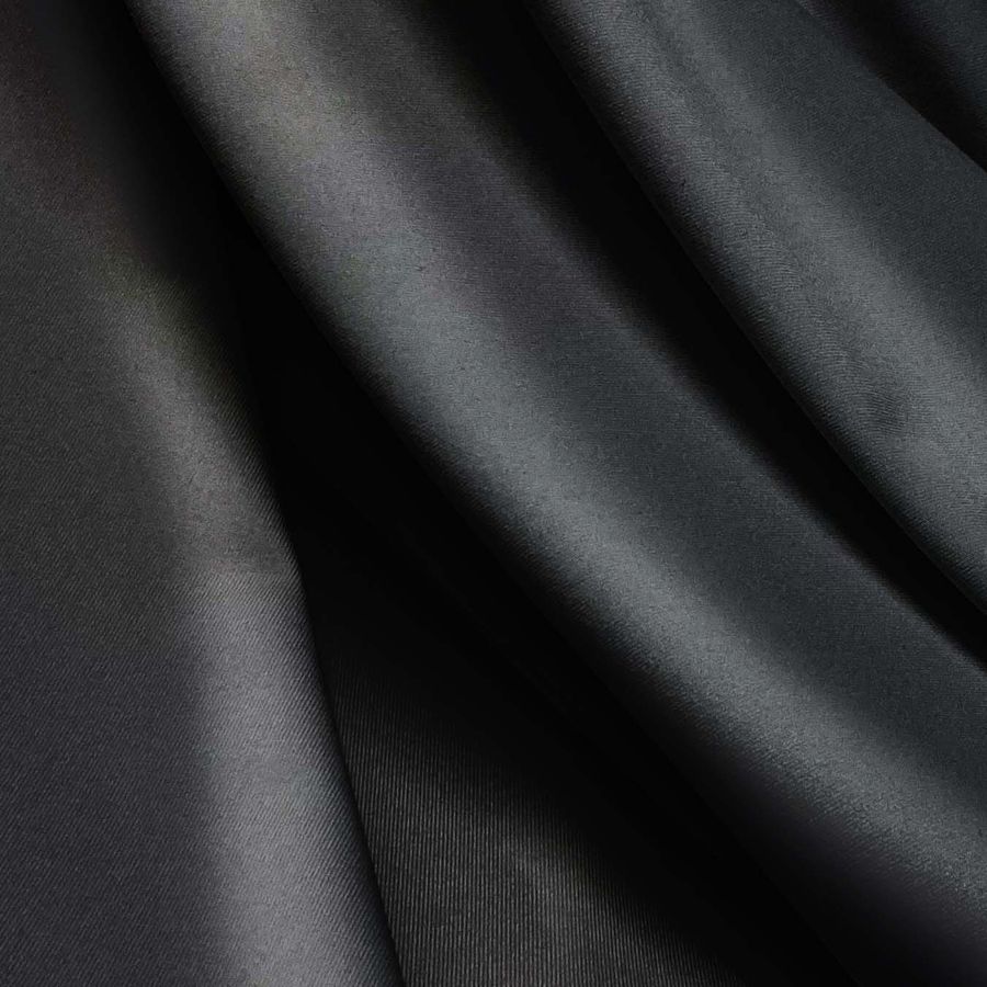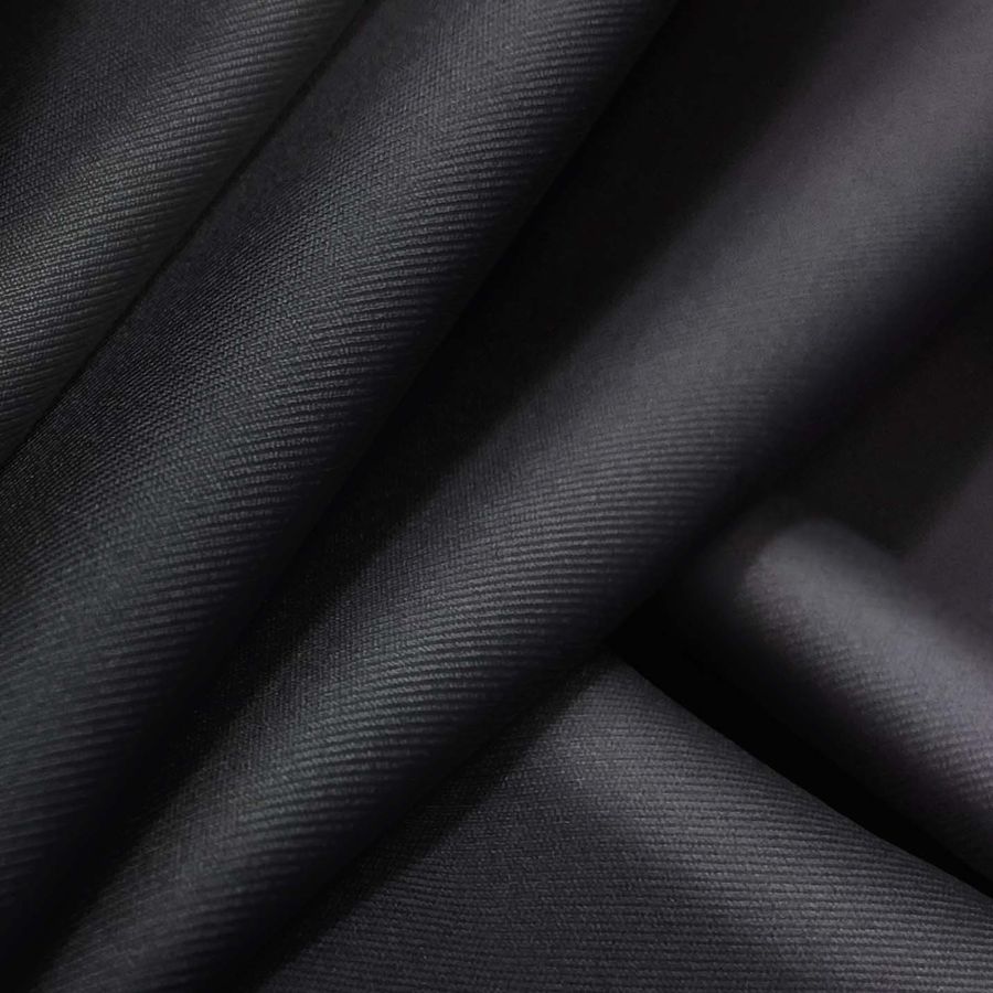 La tela base es Lycra Reciclada - Recycled, con una composición del 85% POLIÉSTER y 15% ELASTANO. Su color liso es negro con un matiz de gato negro, indicado por el CMYK de 82 74 56 81. Este color secundario combina perfectamente con otros tonos oscuros como grises y marrones, y también puede resaltar con colores más brillantes como rojos y naranjas.
