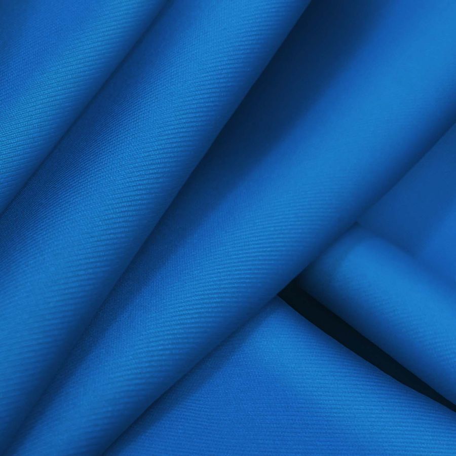 La tela base es Lycra Reciclada - Recycled de 190 gr/m2, compuesta por un 85% de poliéster y un 15% de elastano, y cuenta con un gramaje de 190 gr/m2. El color liso impreso es de un tono azul tejano, que contiene una tinta Cyan de 88 y una tinta Magenta de 61, con un valor de CMYK de 88 61 0 0. Este color es característico por su aspecto fresco y clásico, y combina con colores neutros como negro, blanco y beige.