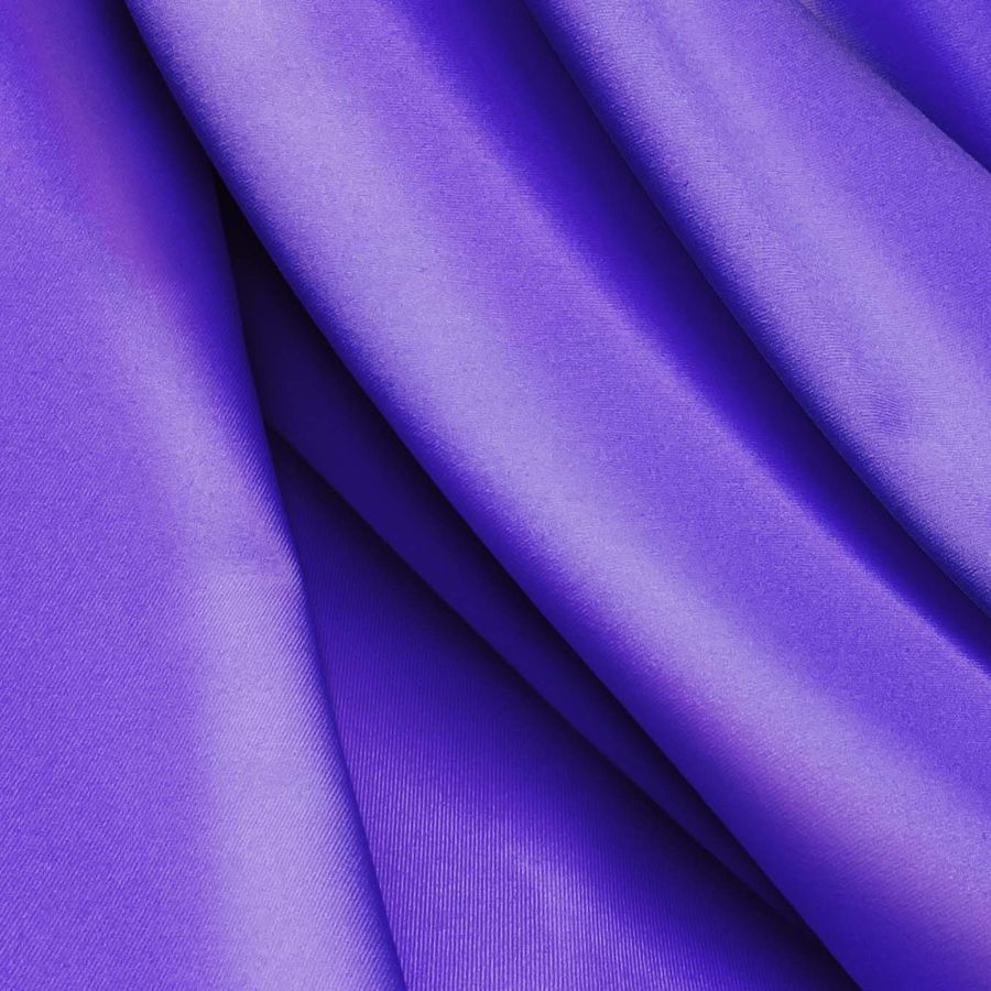 La tela base es Lycra Reciclada - Recycled de 190 gr/m2, compuesta por 85% poliéster y 15% elastano, con un ancho de 150 cm y certificada con GRS. En cuanto al color liso impreso, se trata de un tono que combina azul y azul uva en una proporción CMYK de 79 77 0 0, impreso a una sola cara por impresión digital textil. Además, su acabado es resistente al cloro y posee Protección UV Muy Alta 50+.