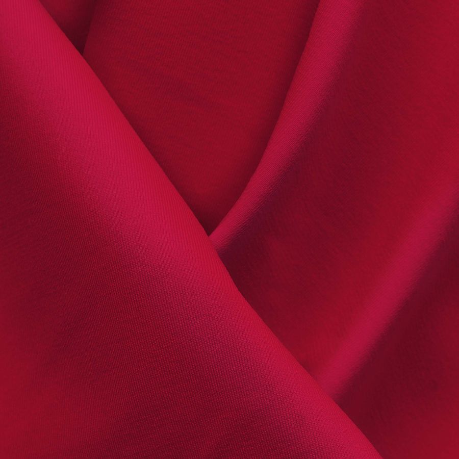 La Lycra Reciclada - Seal de 230 gr/m2 se presenta con un color liso impreso en Rojo Amaranto, cuyo contenido de CMYK es de 8 98 64 2. Este tono presenta un matiz rojizo muy intenso que combina perfectamente con tonos blancos, negros y grises, así como con tonos dorados y plateados para un look más festivo. La tela base es una Lycra compuesta por 75% POLIÉSTER y 25% ELASTANO, lo que le confiere una textura elástica y suave al tacto. Además, cuenta con un gramaje de 230 gr/m2 y un ancho de 150 cm. La tela está impresa con el color liso a una sola cara por impresión digital textil.
