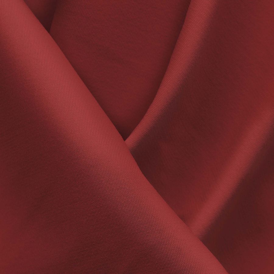 La tela base es Lycra Reciclada - Seal de 230 gr/m2 en color liso Rojo Persa, con un CMYK de 24 83 68 17. Este color se describe como un rojo intenso con un toque de púrpura, que transmite una sensación de intensidad y pasión. Se combina bien con colores neutros como el blanco y el negro, así como con tonos dorados y plateados para crear un efecto de contraste.
