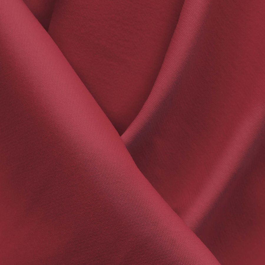 La tela base es Lycra Reciclada - Seal de 230 gr/m2, compuesta por 75% poliéster y 25% elastano. El color liso impreso es Rojo Labio CMYK 18 82 57 7. Este color se describe como un tono subido de rojo con un toque de magenta y amarillo que le otorgan vibración. Combina con colores neutros como el blanco, el negro y los grises, así como con otros rojos más oscuros. La tela está impresa con el color liso a una sola cara por impresión digital textil.