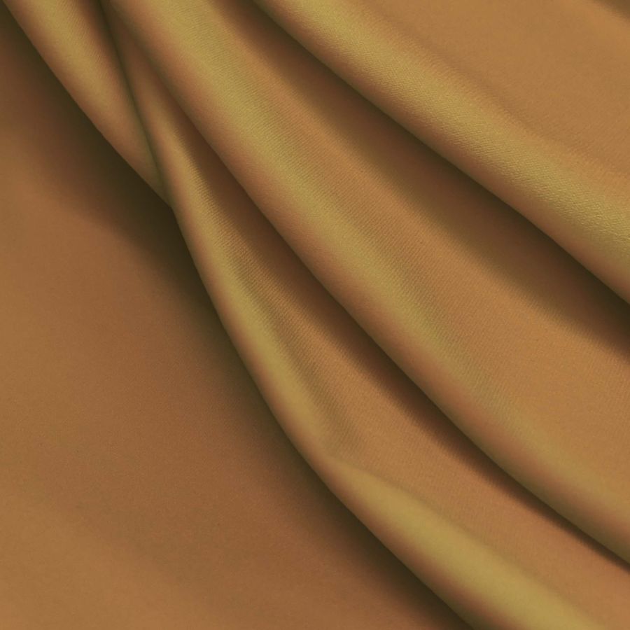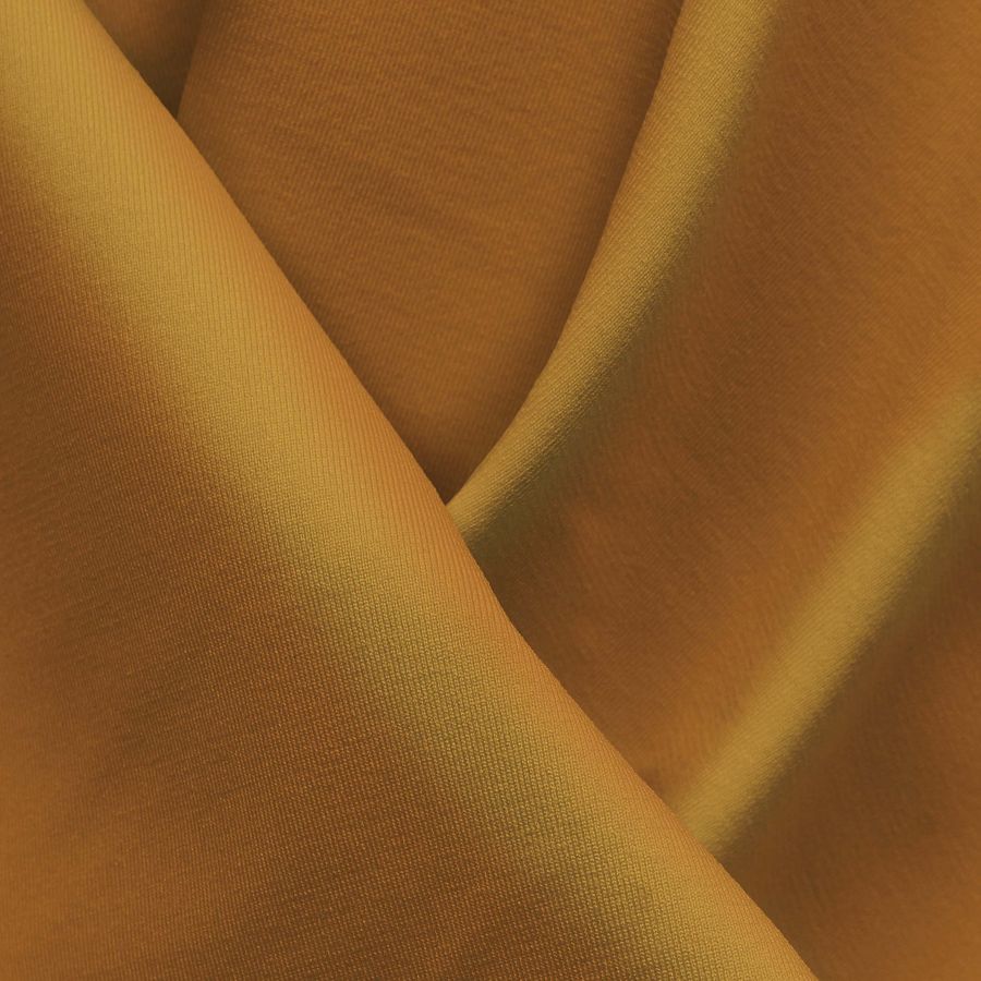 La tela base es Lycra Reciclada - Seal de 230 gr/m2, compuesta por 75% poliéster y 25% elastano, con un gramaje de 230 gr/m2 y un ancho de 150 cm. El color liso impreso es Naranja de Cadmio, con un CMYK de 13 49 82 3. Este color es un tono vibrante y cálido que transmite energía y vitalidad, combina bien con tonos tierra y beige para un aspecto más natural, o con tonos fríos como el azul profundo para un contraste más dramático.