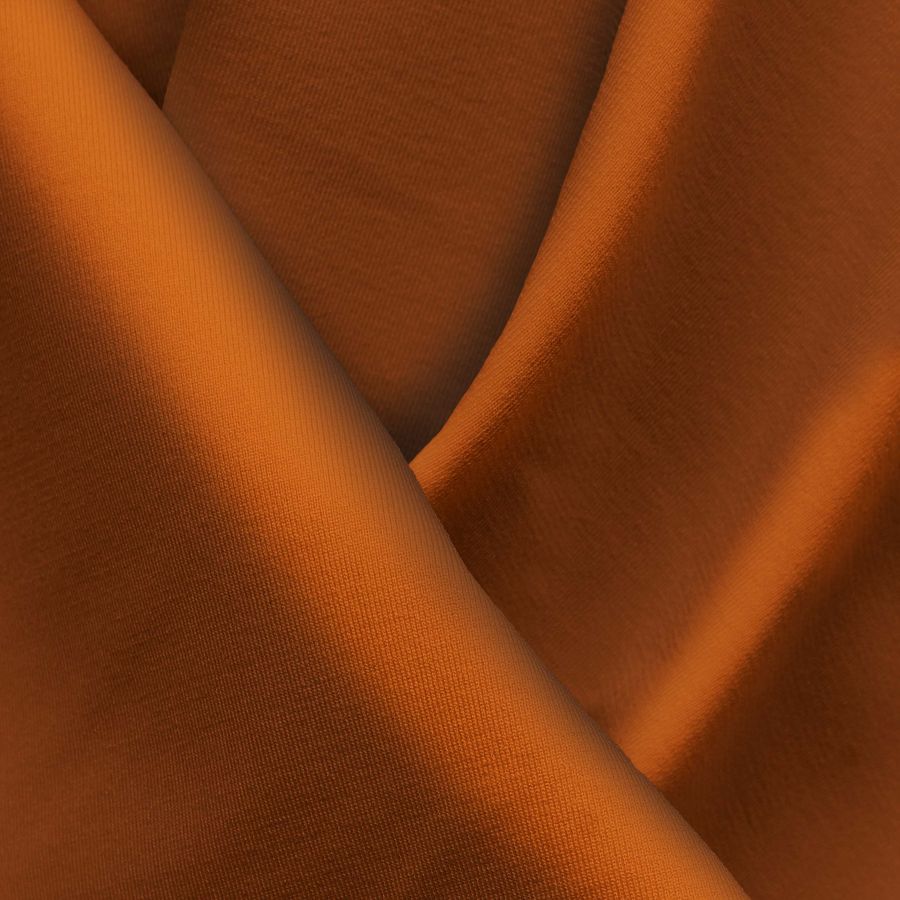 La tela base de esta prenda es Lycra Reciclada - Seal de 230 gr/m2. El color liso impreso es naranja oscuro, cuyo CMYK es 30 82 100 37. Este color es vibrante y llamativo, ideal para prendas deportivas o de baño. El naranja oscuro se combina bien con tonos como el blanco, el gris claro, el turquesa y el amarillo limón.