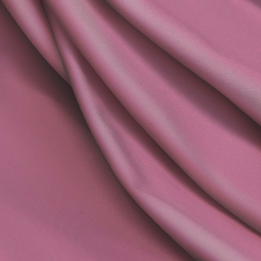 La tela base es Lycra Reciclada - Seal de 230 gr/m2 con una composición de 75% POLIÉSTER y 25% ELASTANO, impresa con un color liso rosa esmalte de uñas con CMYK de 0 61 14 0. El color secundario es un rosa vivo y vibrante que simboliza la feminidad y la alegría. Combina perfectamente con tonos claros como el blanco y el beige, así como con tonos oscuros como el azul marino y el negro.
