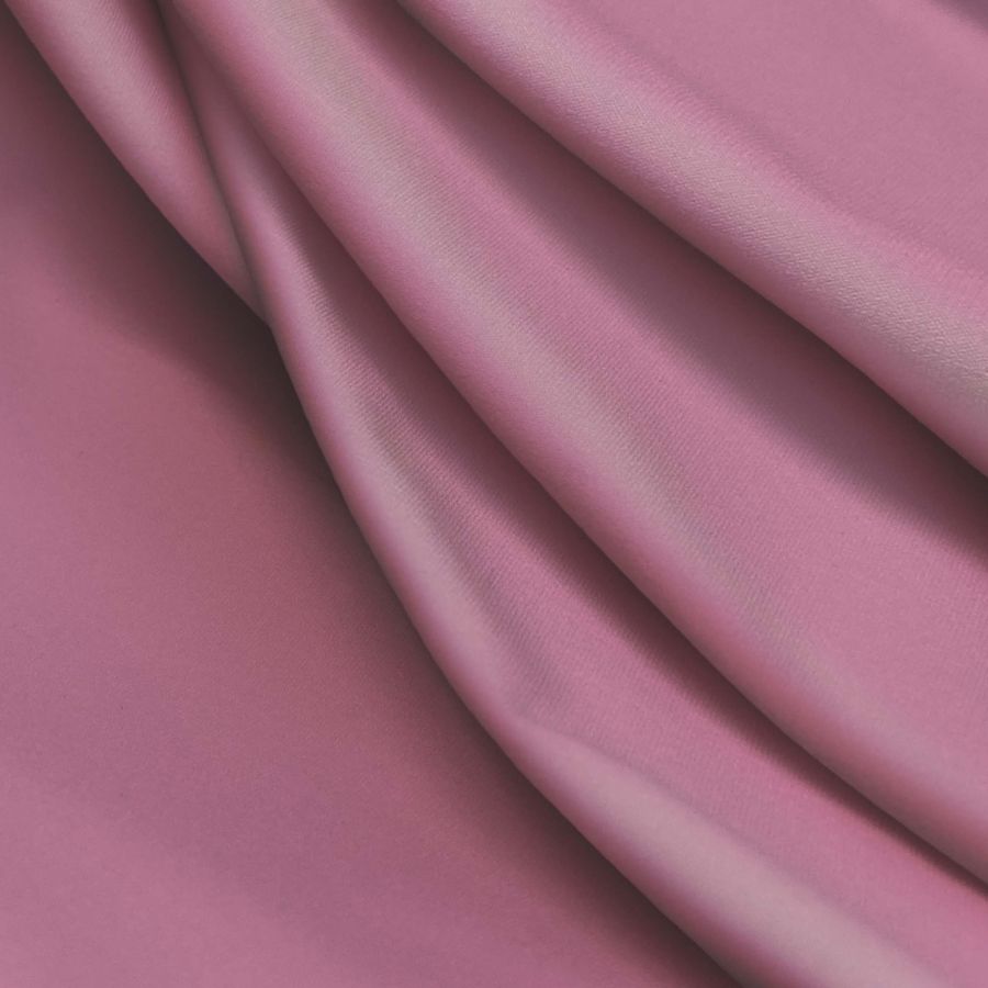 La Lycra Reciclada - Seal de 230 gr/m2 es un tipo de tela elástica con una composición de 75% poliéster y 25% elastano, con un gramaje de 230 gr/m2 y un ancho de 150 cm. El color liso impreso en esta tela es Rosa Baker Miller, que tiene una tinta cian de 0, una tinta magenta de 57, una tinta amarilla de 11 y una tinta negra de 0, lo que se corresponde con un valor de CMYK de 0 57 11 0. Este tono se describe como un rosa suave y calmante, que transmite tranquilidad y relajación. Se combina bien con tonos neutros como el blanco y el gris, así como con tonos más vibrantes como el verde lima y el turquesa.
