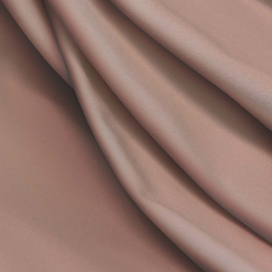 La tela base es Lycra Reciclada - Seal de 230 gr/m2, con composición de 75% POLIÉSTER y 25% ELASTANO en un ancho de 150 cm. El color liso impreso en el tejido es Rosa Caramelo, con un CMYK de 7 42 36 0. Este tono pastel y suave evoca a la inocencia y la juventud, y se combina especialmente bien con tonos verdes azulados, grises y cremas.