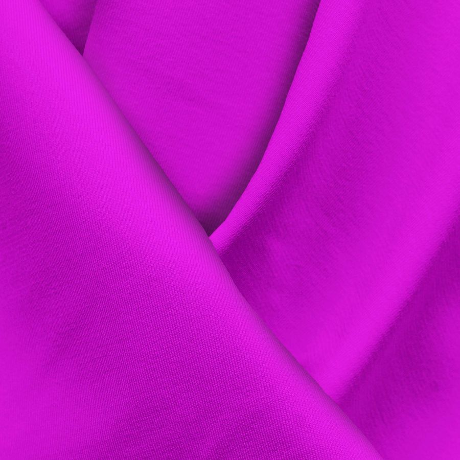 La tela base de este tejido es la Lycra Reciclada - Seal de 230 gr/m2, una lycra compuesta por un 75% de poliéster y un 25% de elastano, con un gramaje de 230 gr/m2 y un ancho de 150 cm. El color liso impreso es de un rosa magenta vibrante, con un CMYK de 41 78 0 0, lo que le otorga una tonalidad cálida y atractiva. En cuanto a su combinación de colores, este rosa magenta se complementa especialmente con los tonos azul y verde.