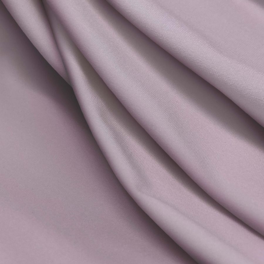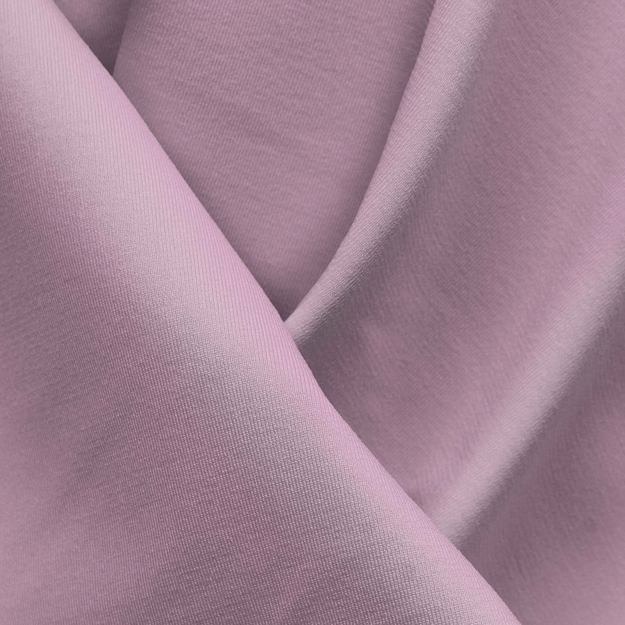La tela base es Lycra Reciclada - Seal de 230 gr/m2, compuesta por 75% POLIÉSTER y 25% ELASTANO, de textura elástica y tacto suave. El color liso impreso es rosa classic con un CMYK de 0 28 0 0, perfecto para crear diseños vibrantes y alegres, que combina especialmente bien con colores como el blanco, el negro, el gris y el verde oscuro.