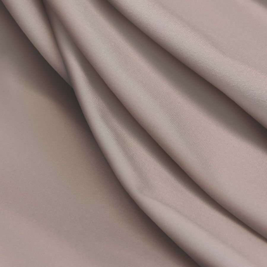 La tela base es una Lycra Reciclada - Seal de 230 gr/m2, con composición de 75% poliéster y 25% elastano, y certificación GRS de sostenibilidad. Su color liso impreso es un rosa suave, con un CMYK de 7 27 24 0. Este color evoca a la feminidad, dulzura y romanticismo, y combina perfectamente con el blanco, el gris, el mint y los tonos tierra. El tejido está impreso con el color liso a una sola cara por impresión digital textil.