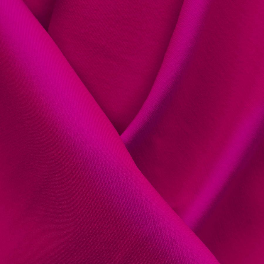 La tela base de este tejido es la Lycra Reciclada - Seal de 230 gr/m2, un tejido elástico con una composición del 75% de poliéster y 25% de elastano. Su color liso impreso es Rosa Mexicano, que se obtiene con una combinación de las tintas Cyan, Magenta y Yellow, en un porcentaje de 2, 98 y 6 respectivamente, y una tinta Black de 0. Estos tonos intensos y vibrantes combinan de manera espectacular con otros colores cálidos como el naranja y el amarillo, creando un efecto muy atractivo para la vista.