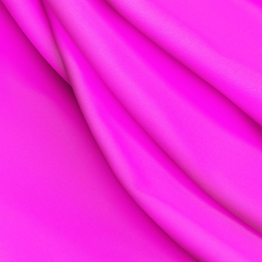 La tela base de este tejido es la Lycra Reciclada de 230 gr/m2, una tela elástica con un acabado resistente al cloro y protección UV muy alta 50+. El color liso impreso es el Rosa Shocking, con un contenido de CMYK de 22 83 0 0. Este color secundario se describe como un rosa fucsia intenso, vibrante y llamativo. Puede combinarse con colores complementarios como el verde lima o el azul celeste, así como también con tonalidades neutras como el blanco o el negro. Este tejido está impreso con el color liso a una sola cara por impresión digital textil, lo que significa que el color aparece únicamente en una cara del tejido.