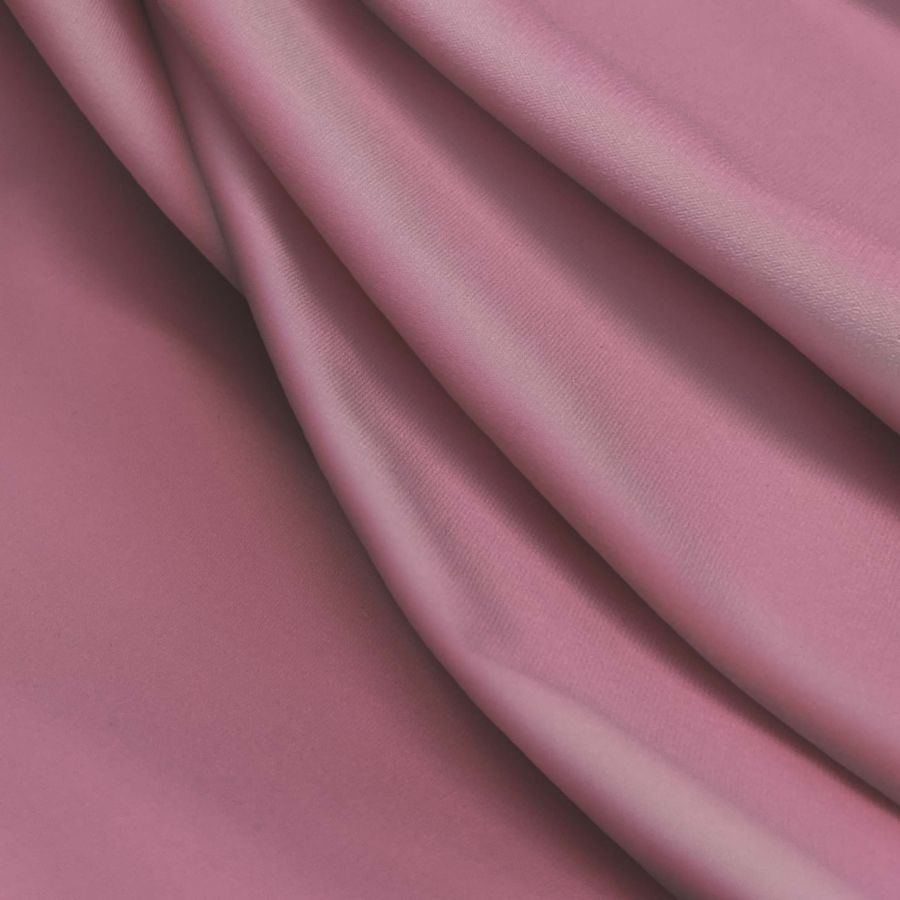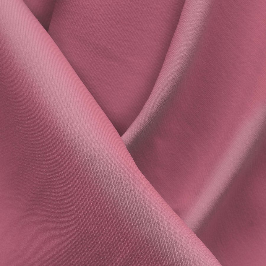 La tela base es Lycra Reciclada - Seal de 230 gr/m2, con un 75% de poliéster y un 25% de elastano, de gramaje de 230 gr/m2 y un ancho de 150 cm. El color liso impreso es rosa sorbete, con un CMYK de 0 56 16 0, lo que indica una alta presencia de magenta y una pequeña cantidad de amarillo. Este color aporta frescura y dulzura a la tela, y combina perfectamente con tonos neutros como gris y blanco, así como con tonalidades más intensas como el verde menta y el turquesa.