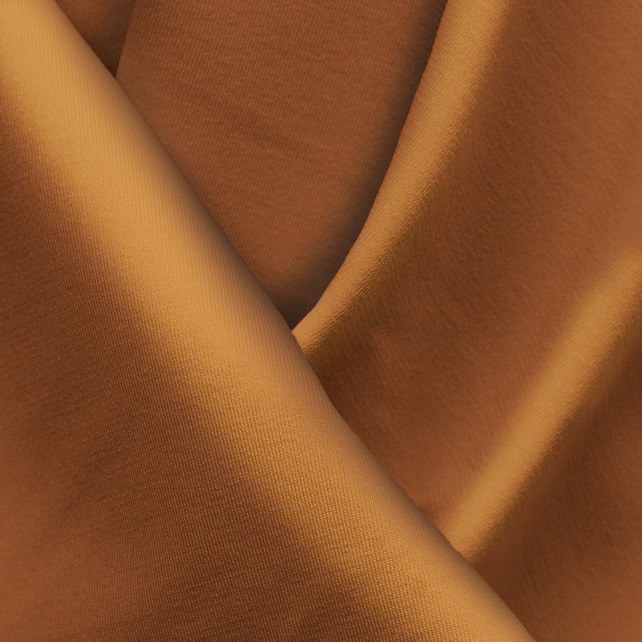 La tela base es Lycra Reciclada - Seal de 230 gr/m2, con una composición del 75% de poliéster y un 25% de elastano. El color liso impreso es Marrón Bronce Antiguo, con CMYK de 28 69 93 24. El color es profundo y cálido, transmitiendo elegancia y atemporalidad. Es un tono ideal para utilizar en piezas de moda, baño y deporte de alta gama. El Marrón Bronce Antiguo combina especialmente bien con tonos beige, dorados, tierras y grises suaves.