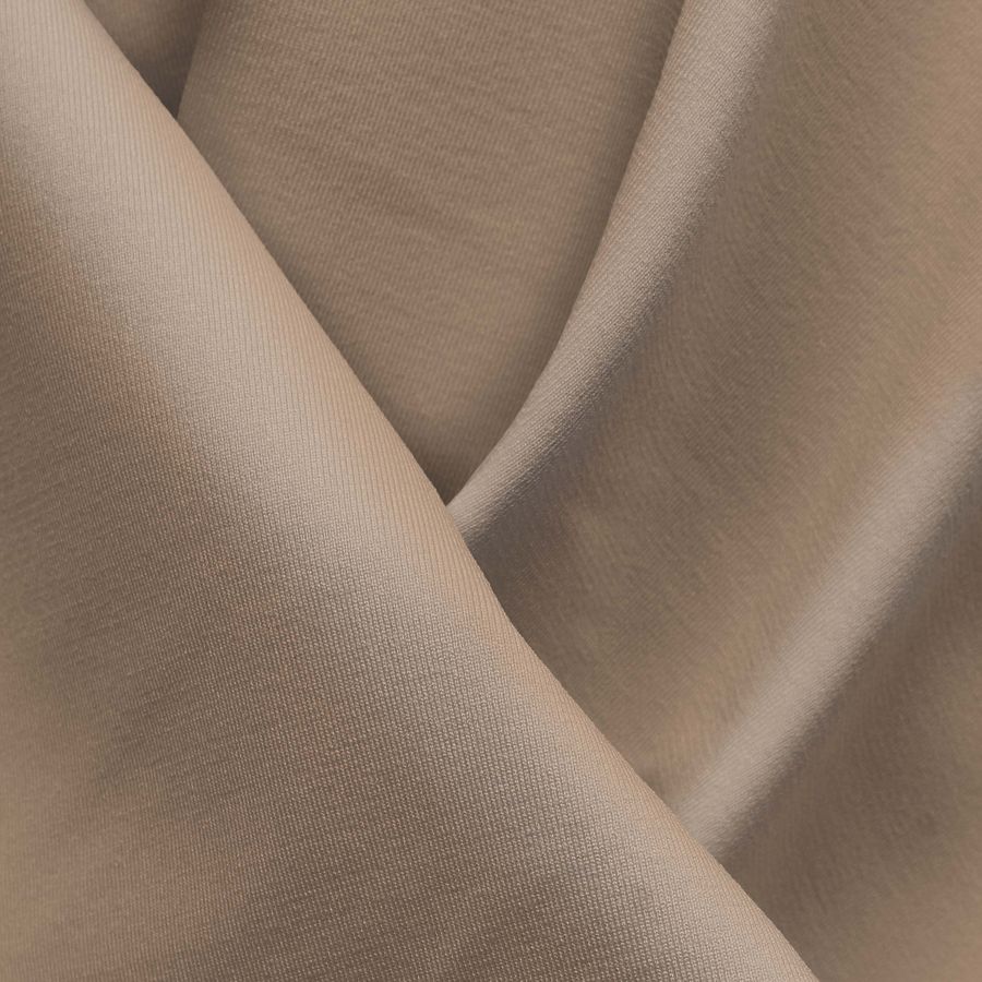 Esta tela base Lycra Reciclada - Seal de 230 gr/m2 presenta un color liso impreso en tonalidades de Marrón y Café con Leche, con un CMYK de 14 28 37 3. El color secundario del Café con Leche refleja elegancia, confort y calidez, y combina de manera excelente con tonos neutros como el gris y el beige.