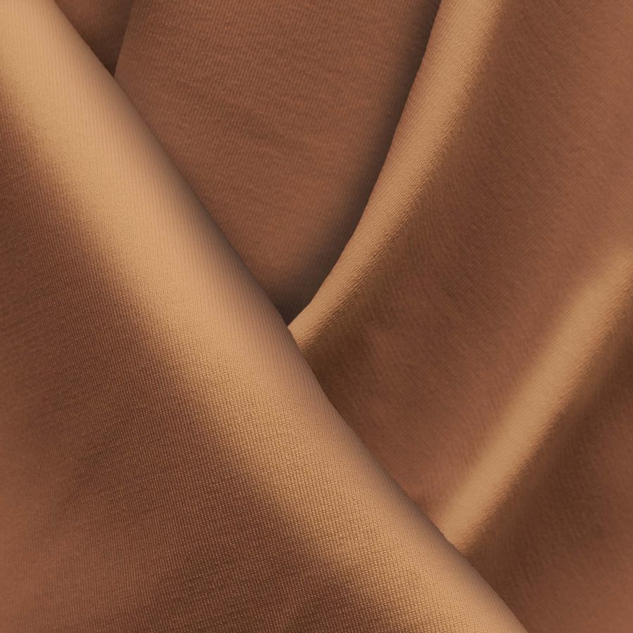 La tela base se trata de Lycra Reciclada - Seal de 230 gr/m2, con una composición de 75% poliéster y 25% elastano. Su color liso impreso es Marron Coñac, con un CMYK de 29 63 75 28. Este color presenta una tonalidad cálida, que evoca la elegancia y el refinamiento. Se trata de un color primario secundario que combina a la perfección con otros colores cálidos como el amarillo dorado, el verde olivo y el beige cremoso.