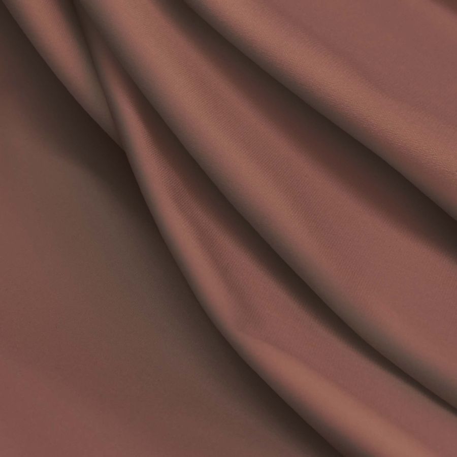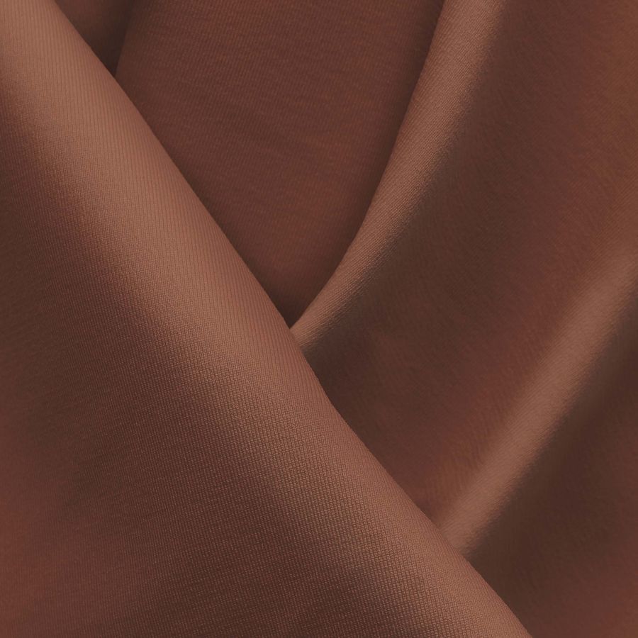 La tela base es Lycra Reciclada - Seal de 230 gr/m2 en color liso impreso Marron-Cuero Viejo. El CMYK del color es 29 60 61 25, un tono marrón oscuro con un toque vintage que se combina con otros colores cálidos como el naranja y el beige. El tejido está impreso con el color liso a una sola cara por impresión digital textil.