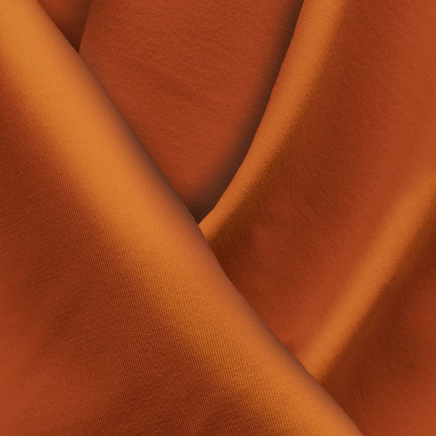 La tela base es Lycra Reciclada - Seal de 230 gr/m2, compuesta por 75% de poliéster y 25% de elastano. El color liso impreso es Marrón Herrumbre con un CMYK de 20-83-100-11. Este color se describe como un tono cálido y terroso que evoca la naturaleza y la calidez del hogar. Se combina particularmente bien con tonos amarillos, anaranjados, verdes y azules, logrando una paleta de colores harmoniosa y natural. Este tejido se imprime en una sola cara a través de impresión digital textil, lo que produce una imagen de alta calidad y durabilidad.