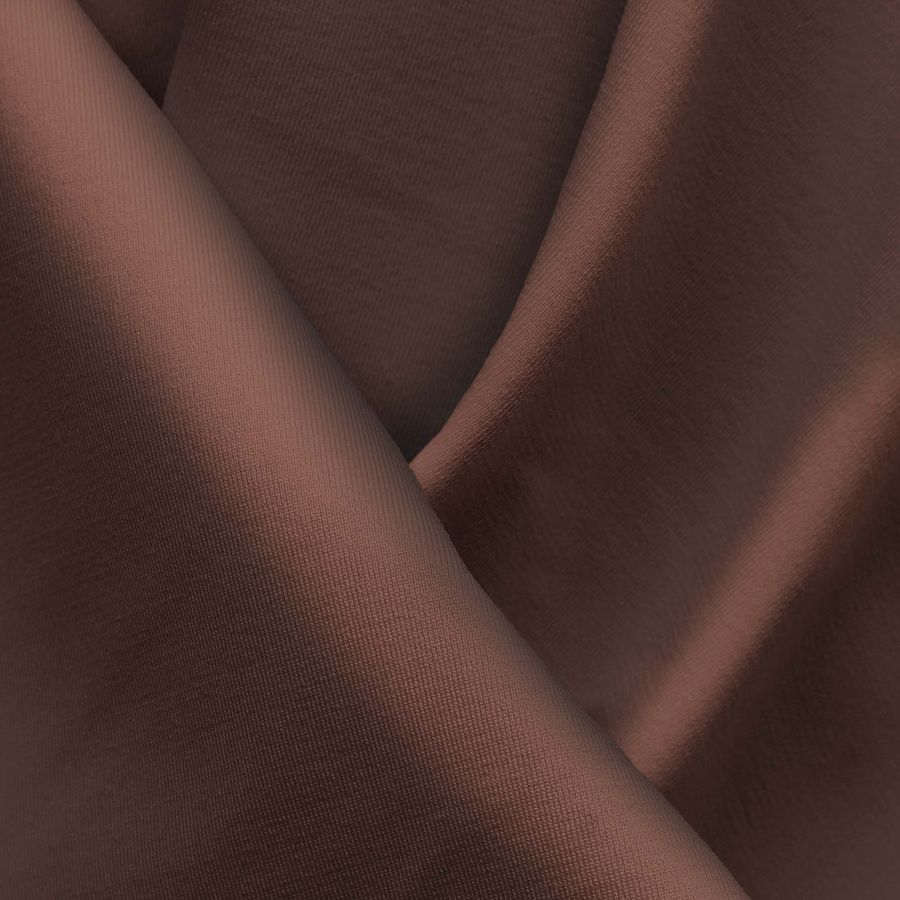 La tela base es Lycra Reciclada - Seal, con una composición de 75% POLIÉSTER y 25% ELASTANO, un gramaje de 230 gr/m2 y un ancho de 150 cm. El color liso impreso es Marron-madera caoba, con un CMYK de 44 68 65 67. Este color simboliza la estabilidad, la madurez y la fuerza. Técnicamente, es un color secundario que se crea a partir de la combinación de colores primarios, con una mayor presencia de magenta y negra, y una menor de cian y amarillo. Este color se combina en particular con tonalidades más claras, como beiges y cremas, para crear contrastes equilibrados.