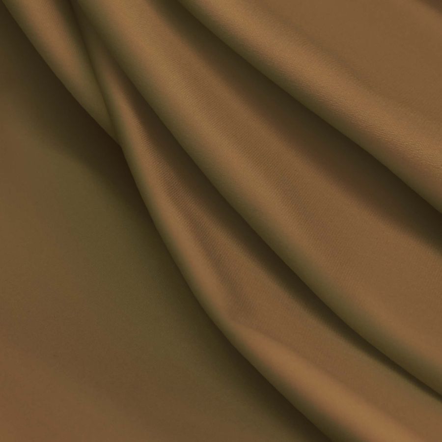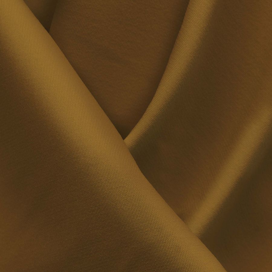 La tela base es Lycra Reciclada - Seal de 230 gr/m2, compuesta de 75% poliéster y 25% elastano. El color liso impreso es un tono Marrón Dorado con un CMYK de 31 52 84 30, y se combina particularmente bien con los tonos azul y verde. El tejido está impreso con este color liso a una sola cara por impresión digital textil.