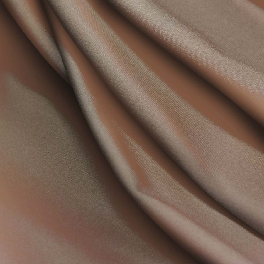La tela base es la Lycra Reciclada - Seal de 230 gr/m2, compuesta por 75% de poliéster y 25% de elastano. Su color liso impreso es Marrón Sepia, con un CMYK de 45 53 58 50, el cual se caracteriza por ser un tono cálido y terroso con un matiz amarillento. Combina perfectamente con colores ocres, beige, verdes tierra y azules claros, siendo ideal para dar un toque de calidez natural a cualquier diseño. Es importante destacar que el tejido está impreso con el color liso a una sola cara por impresión digital textil, siendo un tejido impreso y no tintado.