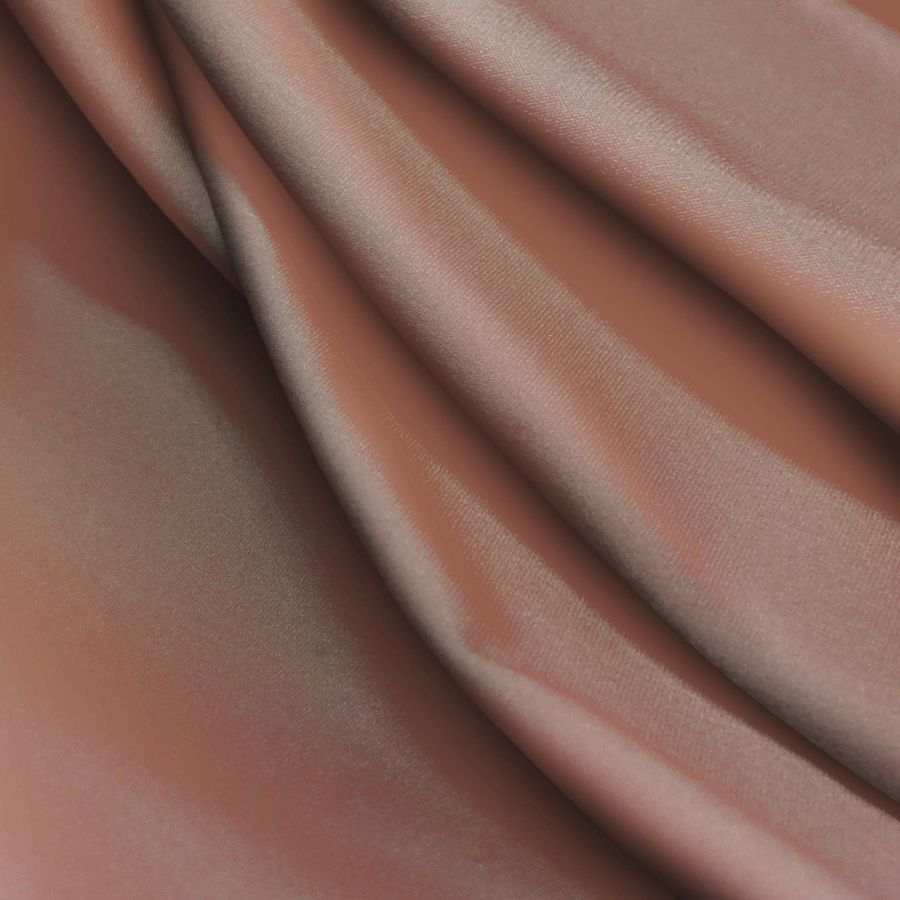La tela base es la Lycra Reciclada - Seal de 230 gr/m2, compuesta por un 75% de poliéster y un 25% de elastano. La tela cuenta con un gramaje de 230 gr/m2 y un ancho de 150 cm. El color liso impreso en la tela es el Marron Van Dyck, con un contenido de CMYK de 40 55 55 47.