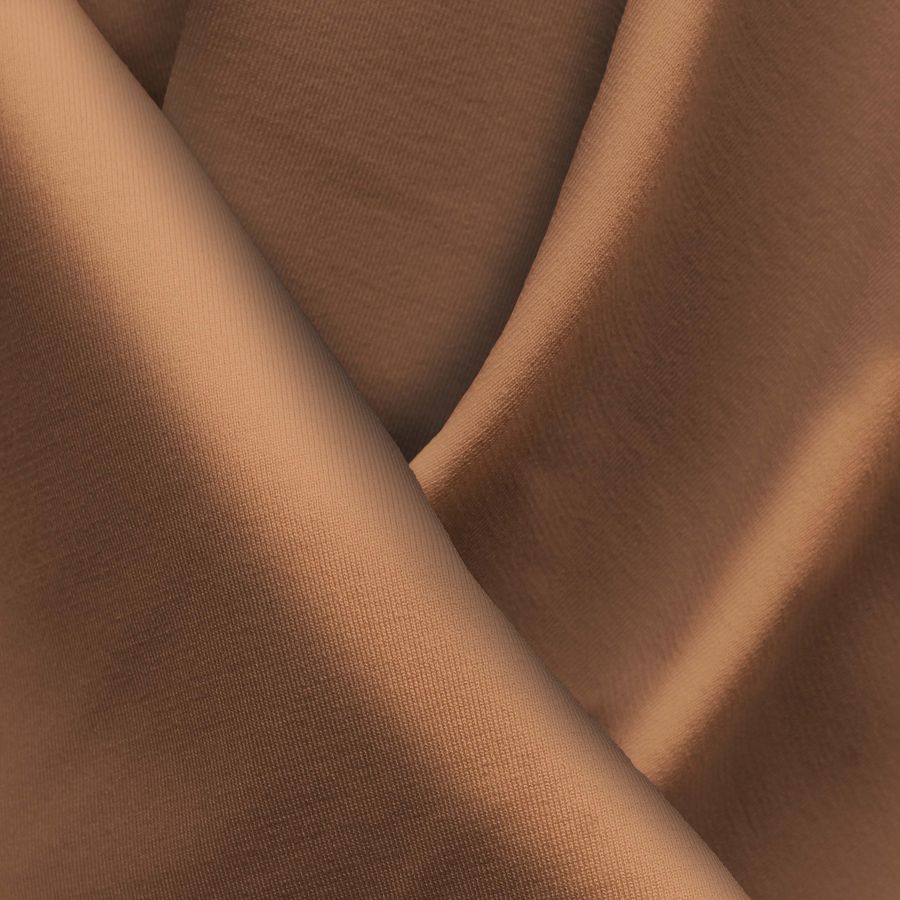 La tela base es la Lycra Reciclada - Seal de 230 gr/m2, con composición de 75% poliéster y 25% elastano, cuyo color liso impreso es Marron Marta Cibelina con un CMYK de 33, 60, 73, 38. Este color se caracteriza por su intensidad y profundidad, es un tono cálido y elegante que recuerda a la piel de los animales, lo que lo hace perfecto para prendas de baño y lencería. Combina muy bien con colores como dorado, verde oscuro, negro, blanco y marrones en tonalidades más claras.