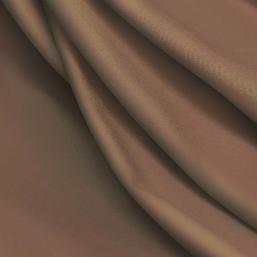 La tela base es Lycra Reciclada - Seal de 230 gr/m2, con una composición de 75% poliéster y 25% elastano. El color liso impreso es Marrón Nicotina, que se obtiene mediante la combinación de las tintas Cyan 31, Magenta 48, Yellow 64 y Black 26, con un resultado de CMYK: 31 48 64 26. Este color se caracteriza por su elegancia y sobriedad, y combina especialmente bien con tonos beige, tierra y verdes oscuros.