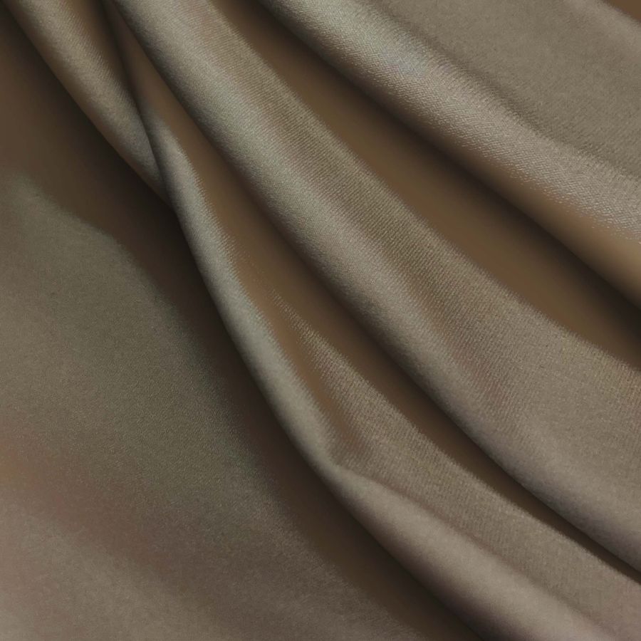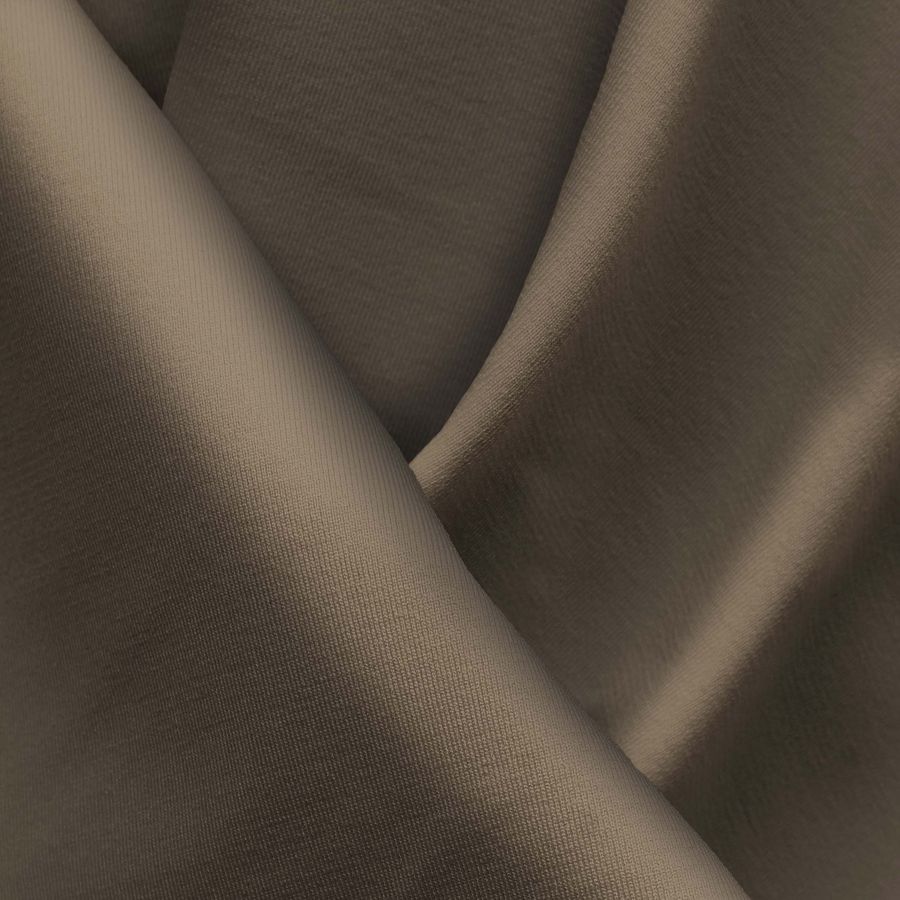 La tela base es la Lycra Reciclada - Seal de 230 gr/m2, compuesta por 75% POLIÉSTER y 25% ELASTANO, con un ancho de 150 cm. Su color liso impreso es Marrón Nutria, representado por el CMYK: 53 53 64 55. Este color se puede describir como una mezcla de tonalidades marrones y grises, dando como resultado un color neutro y elegante. Combina perfectamente con tonos tierra y beige, así como con negros y blancos.