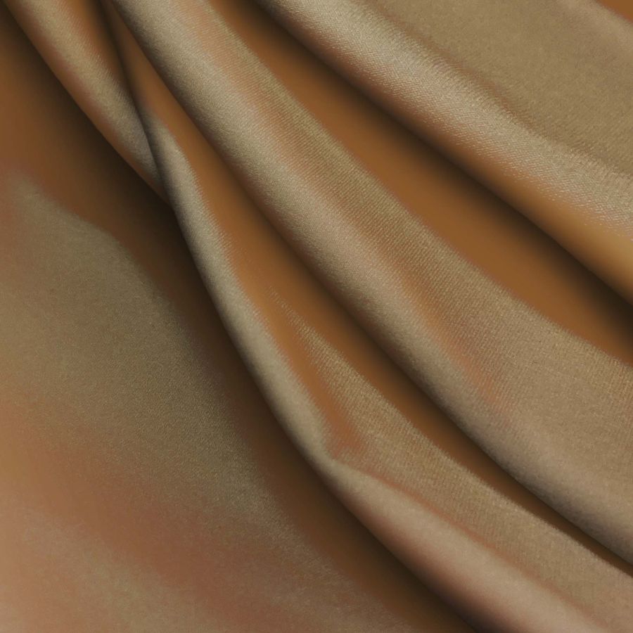 La Lycra Reciclada - Seal de 230 gr/m2 es una tela de composición 75% poliéster y 25% elastano, de ancho de 150 cm y gramaje de 230 gr/m2. El color liso impreso es un Marrón Oscuro Bronceado, con un CMYK de 42 53 74 49. Este color se caracteriza por ser elegante, sobrio y sofisticado, y combina perfectamente con tonos tierra, tonos crudos, grises y marfiles.