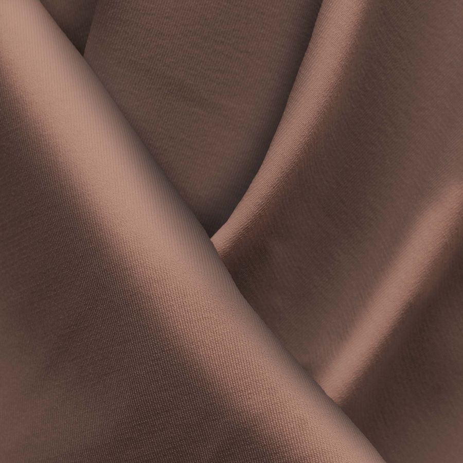 La tela base es Lycra Reciclada - Seal de 230 gr/m2 de composición 75% poliéster y 25% elastano, con una anchura de 150 cm. El color liso impreso es Marrón Oso Café con una combinación de tintas de 40 en cyan, 57 en magenta, 58 en yellow y 49 en black, representando un CMYK de 40 57 58 49. Este color es una mezcla de tonalidades cálidas de marrón con un matiz más oscuro que recuerda al café. Su simbolismo incluye la calidez, la acogida, la seguridad y el confort. Además, este color combina bien con otros colores como el blanco, negro, beige, verde, dorado y naranja.