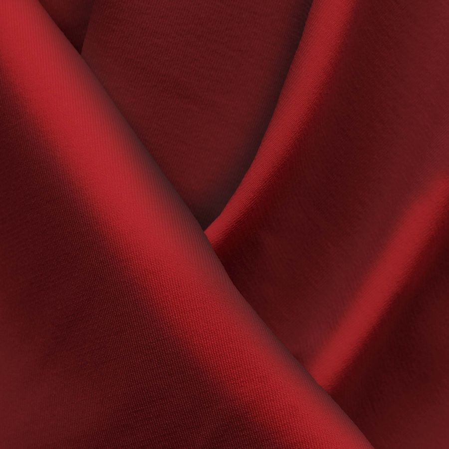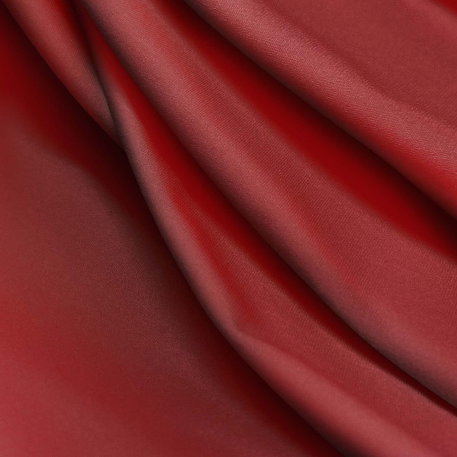 La tela base es la Lycra Reciclada - Seal de 230 gr/m2, siendo un tejido elástico y resistente gracias a su composición de 75% POLIÉSTER y 25% ELASTANO. En cuanto al color liso impreso, posee una tonalidad Marron-Sangre Roja, representada por el CMYK de 34 100 90 54, siendo una combinación intensa, elegante y potente. Este color secundario combina perfectamente con otros colores cálidos como el naranja, dorado y amarillo mostaza.