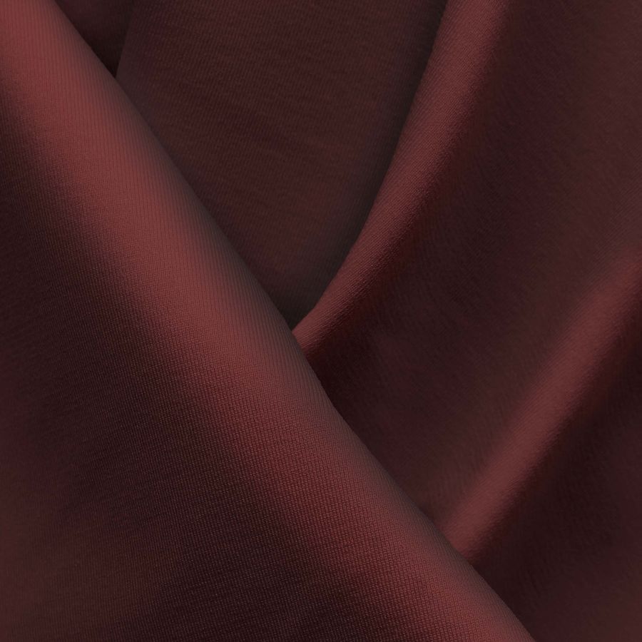 La tela base es Lycra Reciclada en sello de 230 gr/m2, compuesta por 75% de poliéster y 25% de elastano con un ancho de 150 cm. El color liso impreso es un marrón oscuro con matices de siena cuyo CMYK es 48 88 69 77. Este color se combina especialmente bien con tonalidades tierra, nude o verdes grisáceos.