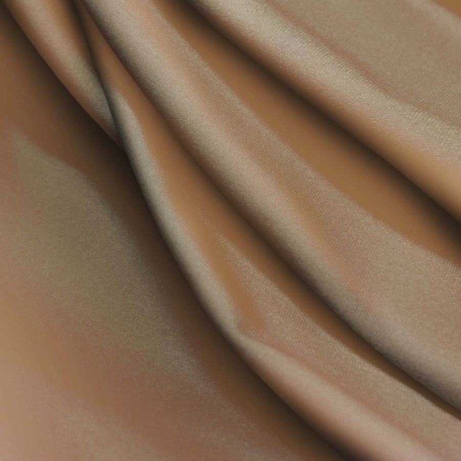 La tela base es una Lycra Reciclada - Seal de 230 gr/m2 con un 75% de poliéster y un 25% de elastano, de 150 cm de ancho. El color liso impreso es un marrón/tabaco con un CMYK de 43 50 63 45. Este color tiene una tonalidad cálida y elegante, que puede combinar muy bien con tonos neutros, como beige, taupe o gris oscuro, y con tonos tierra, como verde oliva o mostaza.