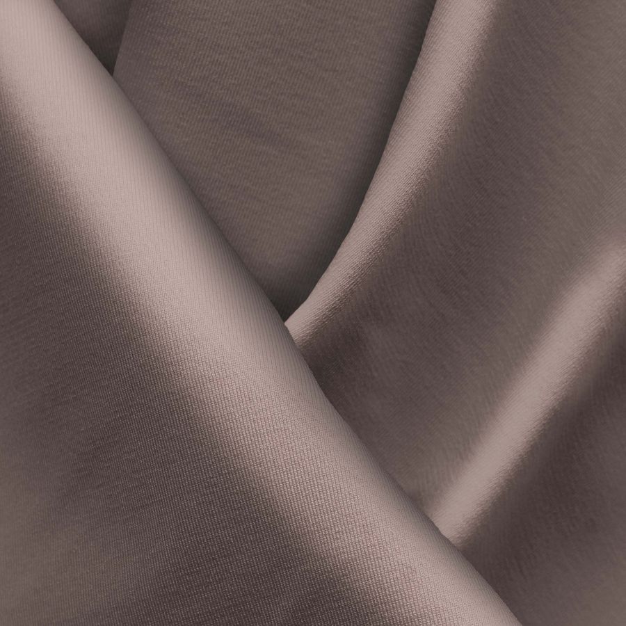 La tela base es la Lycra Reciclada - Seal de 230 gr/m2, con una composición de 75% poliéster y 25% elastano. El color liso impreso es un Marrón Taupe Profundo, que se obtiene a partir de una combinación de tintas en los siguientes porcentajes: Cyan 45%, Magenta 49%, Yellow 48% y Black 38%, dando como resultado un CMYK de 45 49 48 38. Este color se asocia con la naturaleza, la confianza y la estabilidad, proporcionando una sensación de elegancia y sofisticación. Combinado con otros colores, este tono se complementa con tonalidades de gris, beige, turquesa y verde.