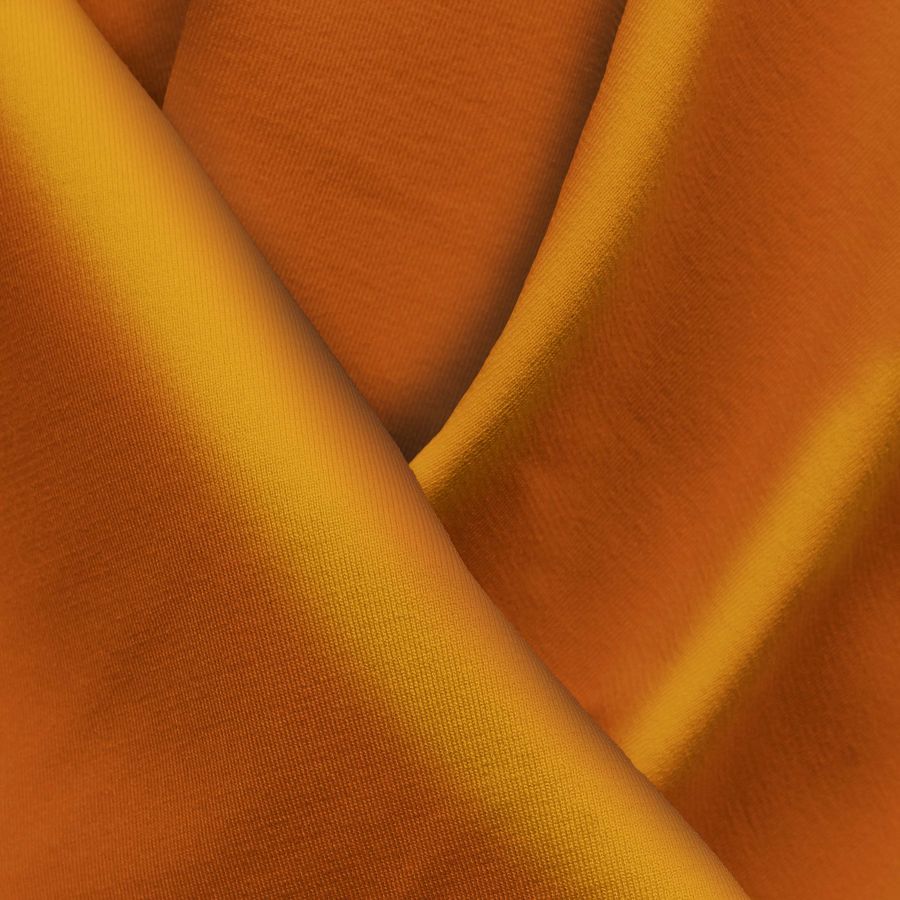La tela base es la Lycra Reciclada - Seal de 230 gr/m2, con composición de 75% poliéster y 25% elastano. El color liso impreso es Marrón Tenne, con un CMYK de 15 74 100 4. Este color terroso y cálido se obtiene con una mezcla predominante de magenta y una alta saturación de amarillo, al que se añade una pequeña cantidad de cyan y negro para ajustar la tonalidad. Este color combina especialmente bien con tonos frescos y neutros, siendo perfecto para looks otoñales y rústicos.