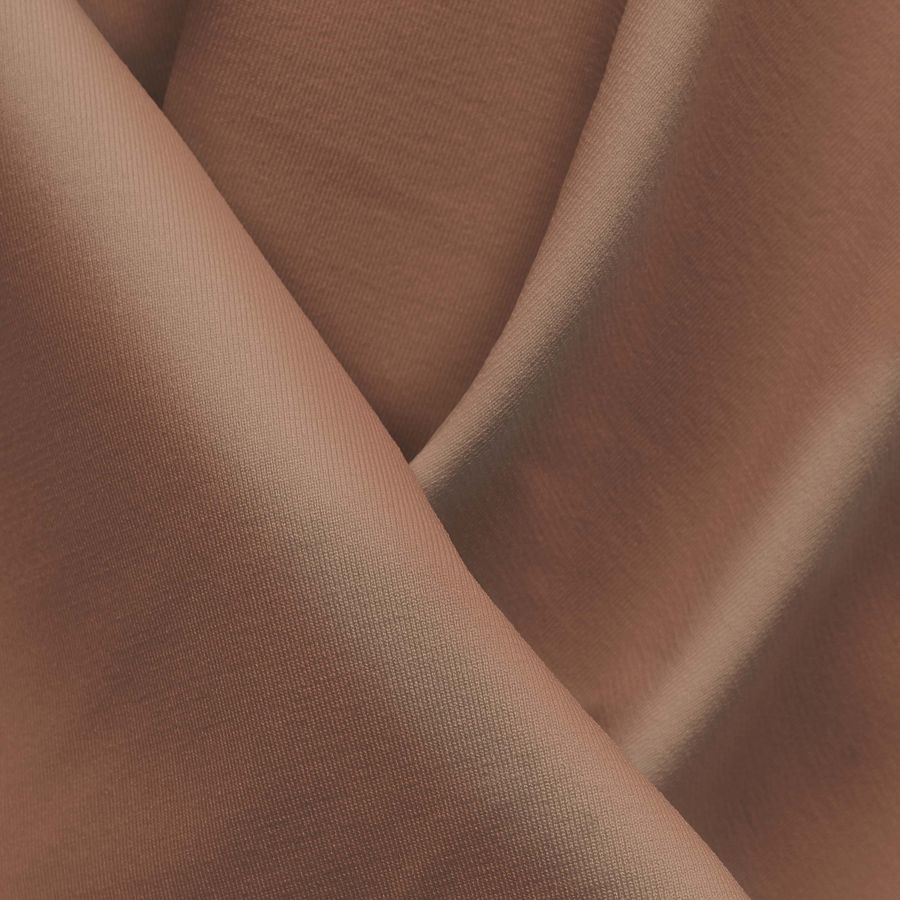 La tela base es la Lycra Reciclada - Seal de 230 gr/m2, compuesta por 75% Poliéster y 25% Elastano. El color liso impreso es un Marrón Terracota con un CMYK de 20-47-52-9, con predominio de la tinta Magenta y Yellow. El color secundario es cálido y terroso, evocando la naturaleza y la tierra. Combina muy bien con colores neutros como el blanco, negro y gris, así como con tonos beige, crema y marrón oscuro. Además, se puede complementar con tonalidades análogas como el rojo oscuro y naranja quemado.