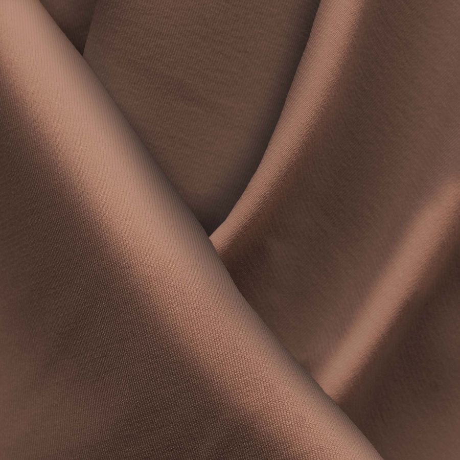La tela base de este tejido es la Lycra Reciclada - Seal de 230 gr/m2 en color liso impreso de Marrón Tostado con un CMYK de 39 59 62 50. Este color es intenso y cálido, con matices de marrón oscuro que encajan perfectamente con colores terrosos y neutros como el beige y el gris, creando un contraste fuerte y agradable a la vista. La tela está impresa con el color liso en una sola cara por impresión digital textil, lo que permite tener un resultado uniforme y vibrante.
