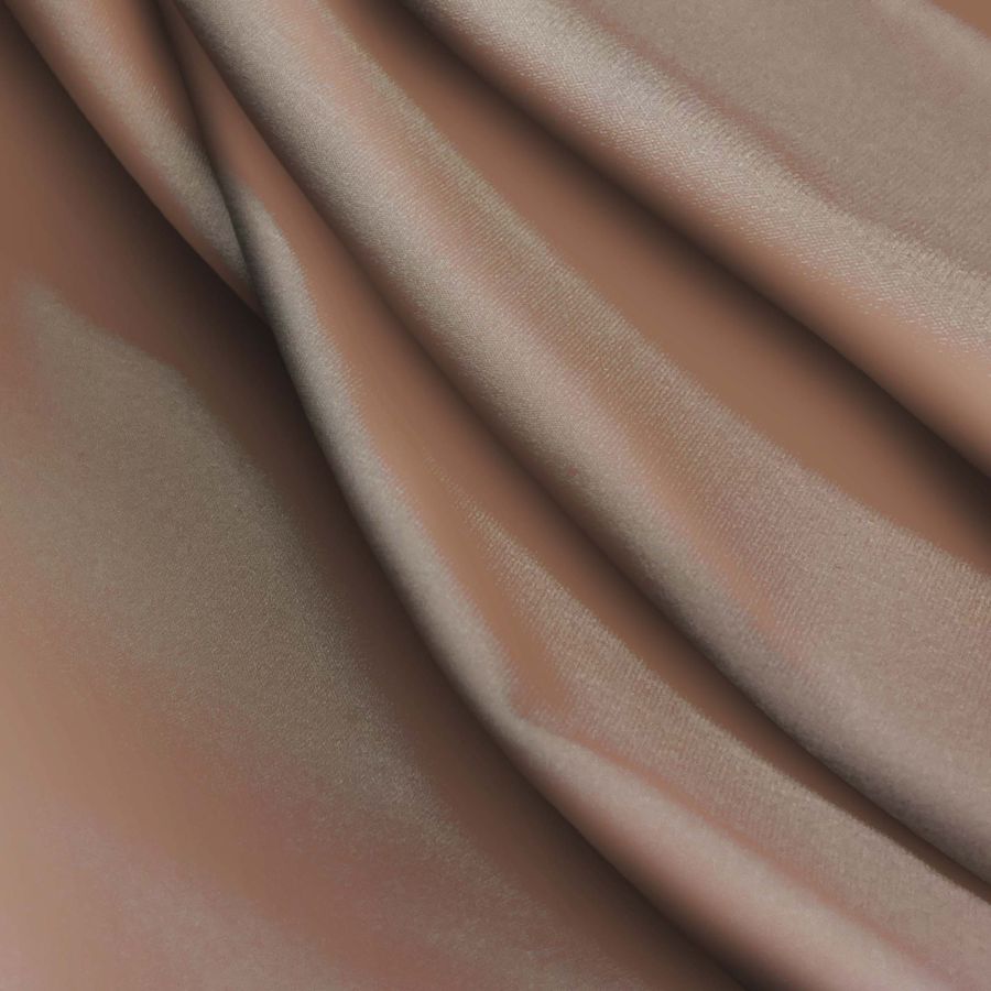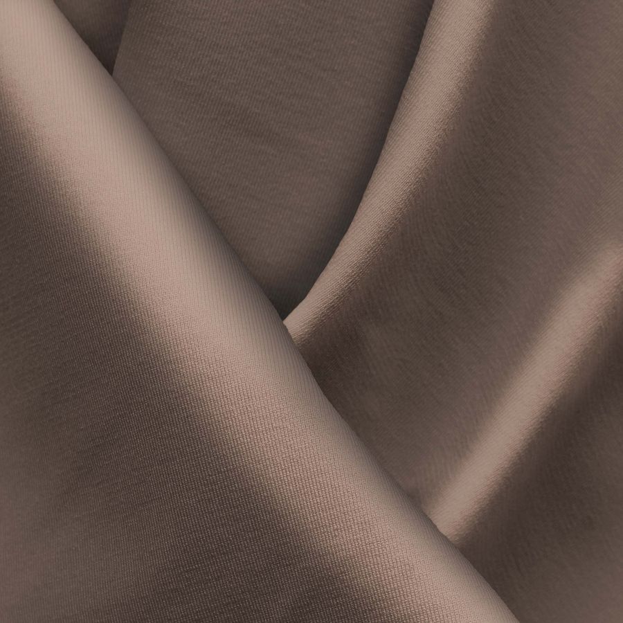 La tela base es la Lycra Reciclada Seal de 230 gr/m2, una lycra compuesta por un 75% de poliéster y un 25% de elastano, con un gramaje de 230 gramos por metro cuadrado y un ancho de 150 cm. El color liso impreso en esta tela es un marrón visón, que se forma a partir de una mezcla de 44% de tinta cian, 51% de magenta, 54% de amarillo y 44% de negro, lo que resulta en un tono suave y cálido. Además del marrón visón, este tono combina perfectamente con otros colores suaves y cálidos, como el beige, el rosa claro y el gris perla.