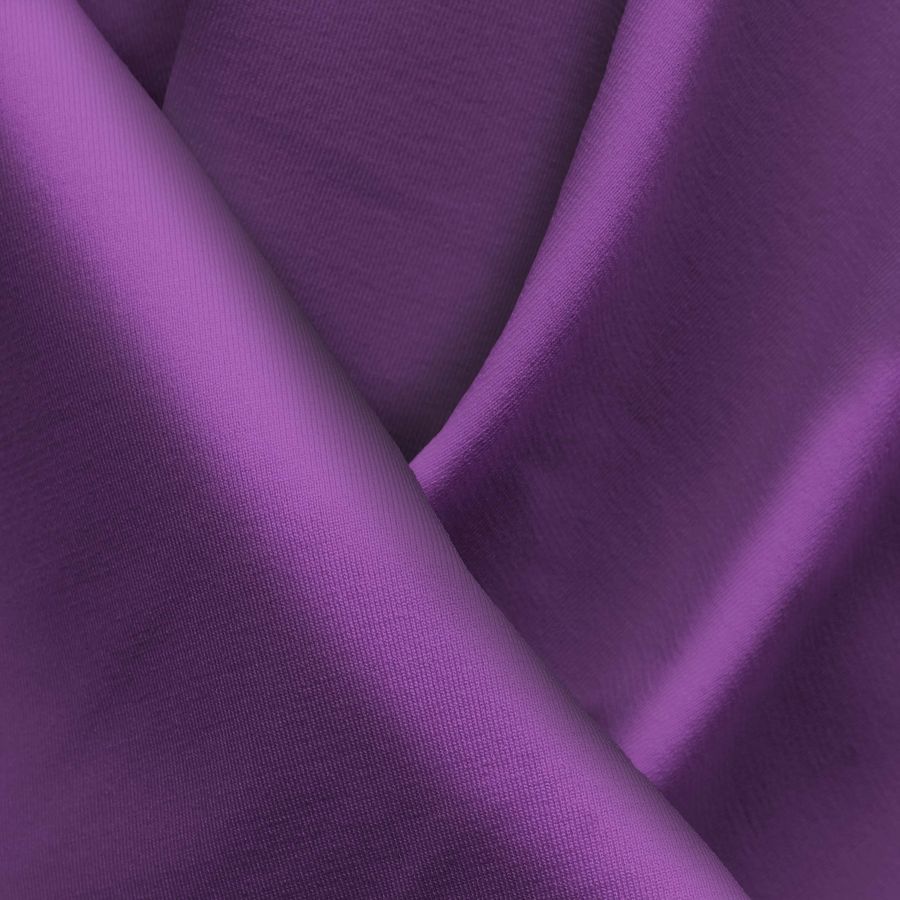 La tela base de este producto es la Lycra Reciclada - Seal de 230 gr/m2 de 75% poliéster y 25% elastano, con un ancho de 150 cm y certificada con GRS. El color liso impreso es el Morado Imperial, cuyo CMYK es de 72 93 24 13. Este color es un morado intenso y brillante que combina muy bien con tonos rosados y azules oscuros, así como con colores neutros como el blanco y el negro.