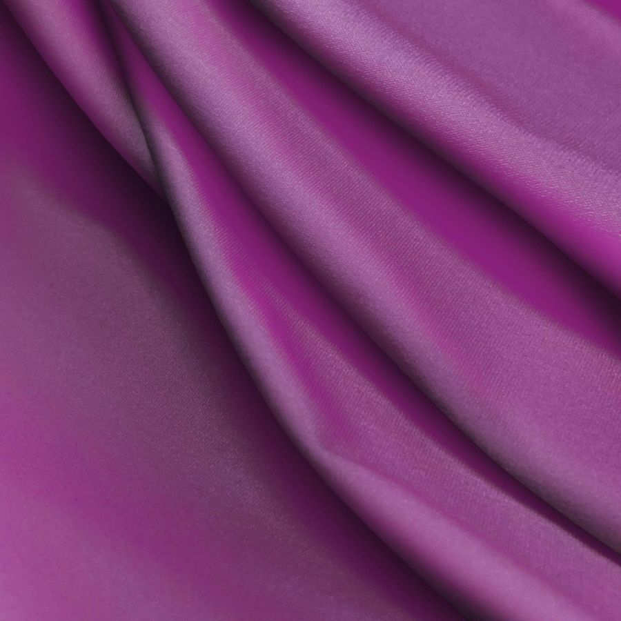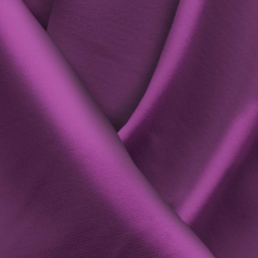 La tela base de este tejido es la Lycra Reciclada - Seal de 230 gr/m2, de composición 75% poliéster y 25% elastano. El color liso impreso en el tejido es un morado palatinado púrpura, cuyo CMYK es 65 95 27 20. Este color secundario transmite una sensación de elegancia y sofisticación, combinando perfectamente con colores neutros como el blanco, negro y gris, y con tonos más claros y suaves como el rosa y el celeste.