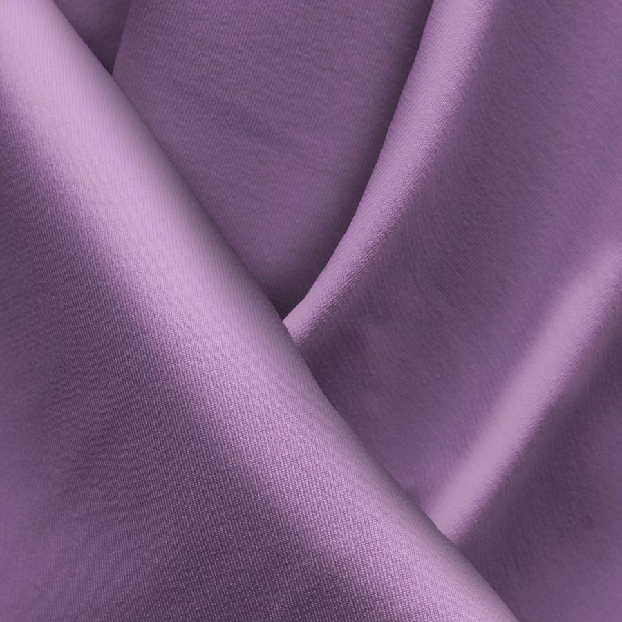 La tela base es Lycra Reciclada de 230 gr/m2 con un ancho de 150 cm y una composición del 75% de Poliéster y un 25% de Elastano. La tela es impresa con un color liso de tonalidad Morado, Pomp and Power. El contenido de Cyan es de 55, Magenta 67, Yellow 20 y Black de 4. El color secundario es un púrpura vibrante, que transmite energía y estilo a las prendas. Combina bien con tonos magenta, rosa, negro y blanco.