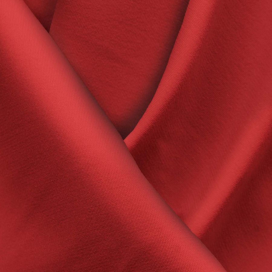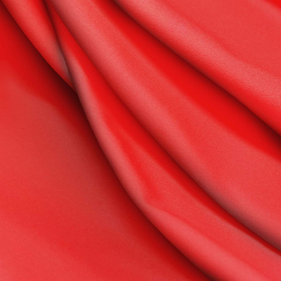 La tela base es Lycra Reciclada - Seal de 230 gr/m2 y el color liso impreso es un Rojo Deseo con una combinación de tintas CMYK 20 99 95 13. Este color se puede describir como un rojo profundamente intenso, con un matiz seductor y vibrante. Se combina particularmente bien con colores complementarios como negro, blanco y diferentes tonalidades de azul.